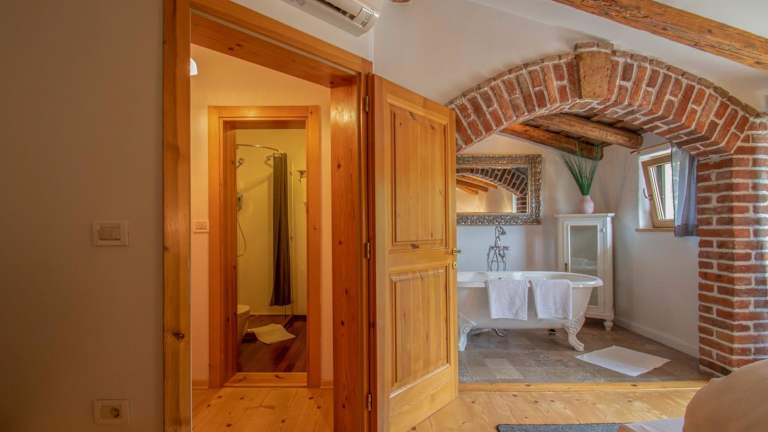 Die klimatisierten Zimmer im Residence Apolonija Guest House bieten modernen Komfort. Jedes Zimmer verfügt über einen Flachbild-TV und ein eigenes Badezimmer mit einer Badewanne, Hausschuhen und Handtüchern. Ein Schreibtisch ist ebenfalls vorhanden. Von allen Zimmern aus genießen Sie einen herrlichen Blick auf die umliegenden Berge.