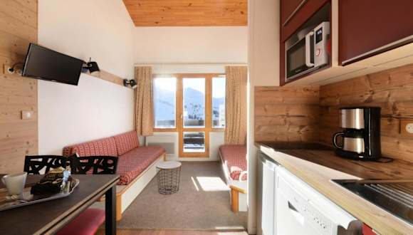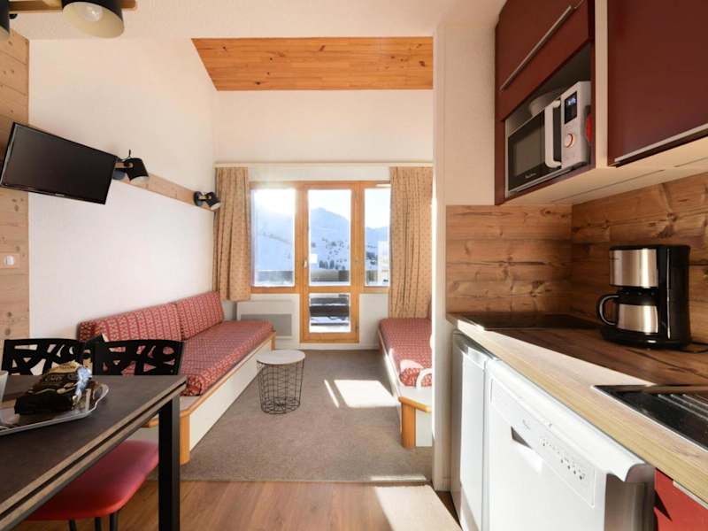 Das Apartment in der Résidence Callisto - 2 Pièces pour 5 Personnes 68 verfügt über einen TV und eine gut ausgestattete Küche mit einem Geschirrspüler. Das Apartment bietet Platz für bis zu 5 Personen und ist eine komfortable Unterkunft für Ihren Aufenthalt in Mâcot La Plagne.
