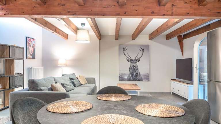 Die Unterkunft bietet eine klimatisierte Ferienwohnung mit einer Größe von 80 m², die mit einem Balkon und einer idyllischen alsacischen Innencour ausgestattet ist. Die Räume sind schallisoliert und sorgen für einen ruhigen Aufenthalt. Zu den Annehmlichkeiten gehören gratis WLAN und ein privat nutzbarer Parkplatz.