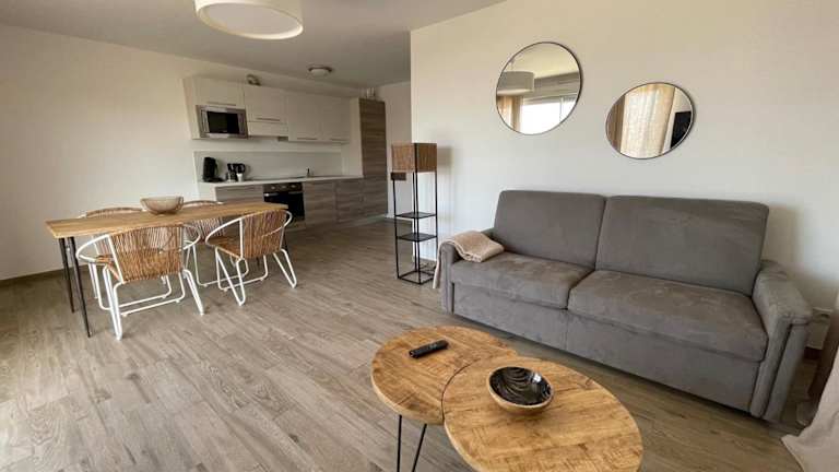 Die Residence Des Îles bietet ein klimatisiertes Apartment mit 2 Schlafzimmern. Das Apartment verfügt über einen Flachbild-TV und einen gemütlichen Sitzbereich. Die Küchenzeile ist mit allen notwendigen Geräten ausgestattet, darunter ein Kochfeld, ein Backofen, ein Kühlschrank und eine Mikrowelle. Das eigene Bad ist mit einer Dusche und einem Haartrockner ausgestattet. Sie finden auch eine Waschmaschine, ein Sofa und ein Bügeleisen/-brett in der Unterkunft.