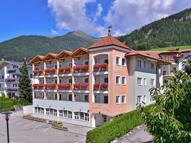 Bereits die Anfahrt nach Terenten im schönen Pustertal ist eine Reise wert. Von der Hauptstraße windet sich ab Vintl die Seitenstraße hoch in den Ort am Berg und bietet an jeder Kurve einen neuen, traumhaft schönen Ausblick. Die Residence Diana liegt ruhig am Hang, das Ortszentrum erreichen Sie fußläufig ohne lange Wege. Einem gemütlichen und / oder sportlichen Urlaub zu jeder Jahreszeit steht hier nichts im Wege.