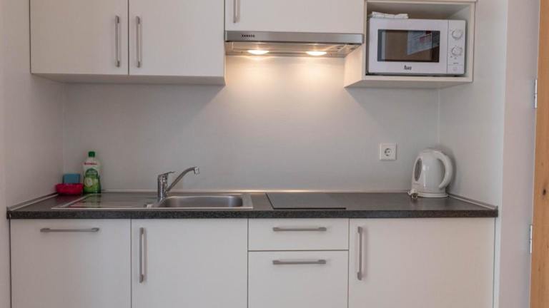 Die Zimmer sind klimatisiert und verfügen über einen Sitzbereich, einen Flachbild-TV mit Satellitenkanälen, einen Safe sowie ein eigenes Badezimmer mit Dusche. Einige Zimmer sind zusätzlich mit einer Küchenzeile ausgestattet, die einen Kühlschrank, einen Geschirrspüler und eine Mikrowelle umfasst. Zur Ausstattung gehören ebenfalls Bettwäsche und Handtücher.
