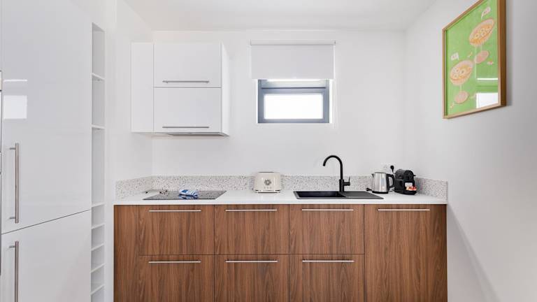 Die Unterkunft verfügt über eine voll ausgestattete Küche mit Kühlschrank, Geschirrspüler, Ofen, Mikrowelle und Kaffeemaschine, was Selbstversorgermöglichkeiten bietet.
