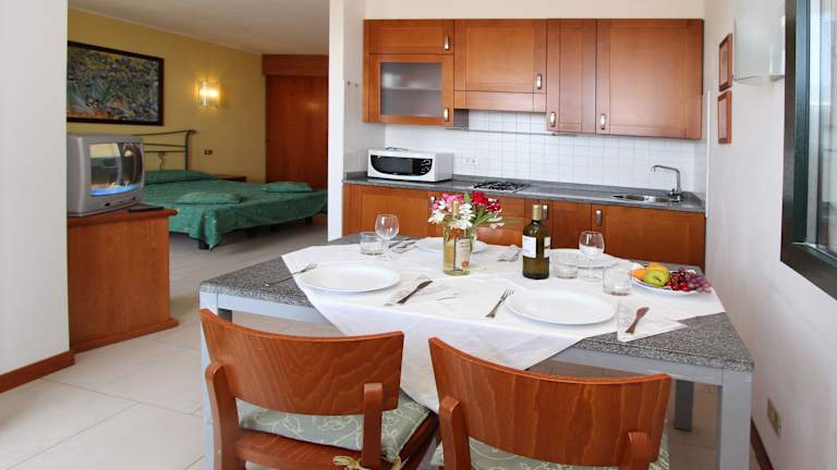 In der Eurobeach Residence haben Sie die Möglichkeit, Ihre Mahlzeiten selbst zuzubereiten. Die Apartments verfügen über eine voll ausgestattete Küchenzeile mit einem Essbereich. Wenn Sie jedoch keine Lust zum Kochen haben, finden Sie in der Umgebung zahlreiche Restaurants, die eine Vielzahl von Speisen und Getränken anbieten.