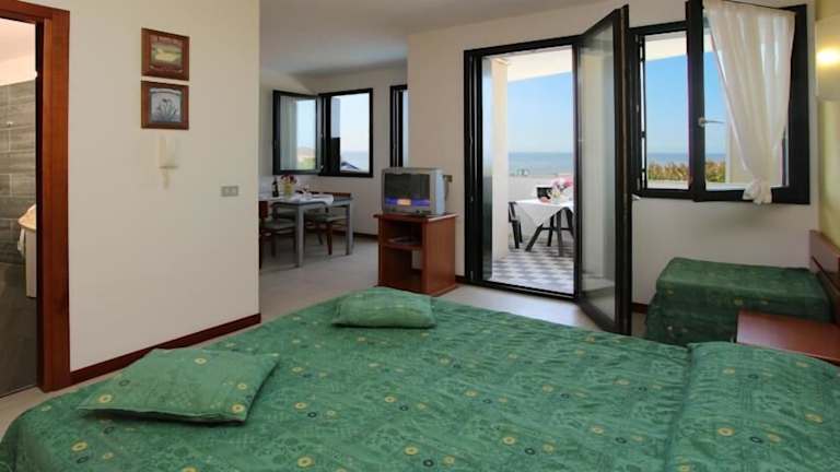 Die Studios und Apartments der Eurobeach Residence sind geräumig und komfortabel eingerichtet. Jede Unterkunft verfügt über einen eigenen Balkon oder eine Terrasse, auf denen Sie die frische Luft und die Aussicht genießen können. Die Küchenzeile ist voll ausgestattet und bietet alles, was Sie für die Zubereitung Ihrer Mahlzeiten benötigen. Das Badezimmer verfügt über eine Dusche und ist modern eingerichtet.