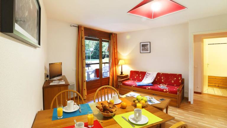 Die Résidence Goélia Le Nevez befindet sich in den Alpen, im Skigebiet von Les Contamines-Montjoie, auf etwa 1.164 m über dem Meeresspiegel. Das Stadtzentrum ist etwa 100 m entfernt. Sallanches liegt in einer Entfernung von rund 23 km und Chamonix etwa 38 km.