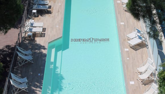 Il Residence Hermitage è situato in una tranquilla zona di Pietra Ligure, a 80 metri dal mare e a dieci minuti di passeggiata dal centro cittadino. Offre appartamenti di varie categorie e dimensioni, dislocati in tre edifici serviti da ascensore, finemente arredati con cucine totalmente accessoriate. Tutti gli appartamenti sono forniti di biancheria completa. Immersa tra gli alberi di un vasto giardino privato, la struttura offre inoltre una grande hall con servizio bar, connessione Wi-Fi gratuita nelle aree comuni, piscina per adulti con zona idromassaggio, area giochi e piscina bimbi, campo da tennis e parcheggio interno video sorvegliato. Nel prezzo del soggiorno, il Residence Hermitage include per i propri ospiti, due sdraio e un ombrellone presso lo stabilimento balneare privato Bagni Hermitage.