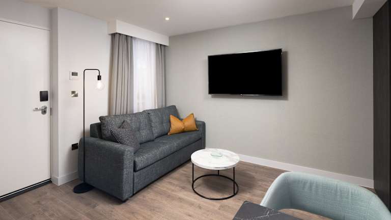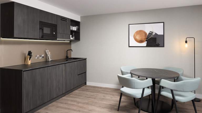 Die Apartments im Living by BridgeStreet bieten Luxus und Komfort. Jedes Apartment verfügt über eine moderne, komplett ausgestattete Küche, in der Sie Ihre eigenen Mahlzeiten zubereiten können. Die Badezimmer sind mit eleganten Fliesen ausgestattet und die Schlafzimmer sind geräumig und gemütlich. Der offene Wohn- und Essbereich ist mit einem Flachbild-TV und bequemen Ledersofas ausgestattet. WLAN ist kostenlos verfügbar und auf Anfrage kann ein DVD-Player bereitgestellt werden.