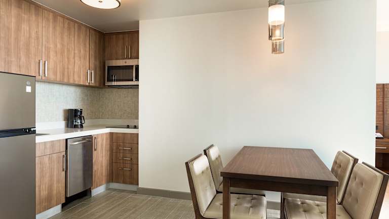 Die klimatisierten Zimmer sind ausgestattet mit einem Doppelbett oder Kingsize-Bett, einem Schreibtisch, einem Flachbild-TV und einem Badezimmer mit Dusche. Eine Kochnische mit Kühlschrank, Mikrowelle und Tee-/Kaffeebereiter, ein Safe, eine Minibar sowie kostenfreies WLAN sind ebenfalls vorhanden. Einige Zimmer bieten Meerblick, und barrierefreie Zimmer sind buchbar.