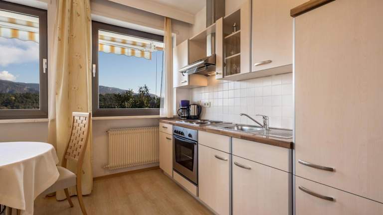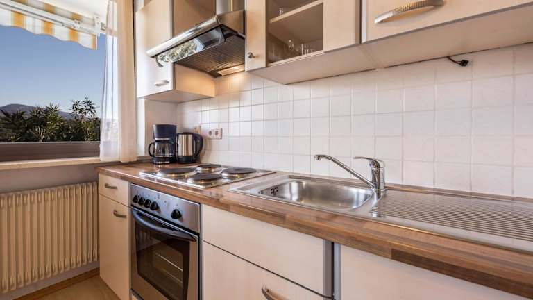 Die Ferienwohnung verfügt über ein Schlafzimmer, ein Badezimmer, Bettwäsche und Handtücher. Zur Ausstattung gehören ein TV mit Satellitenkanälen, eine voll ausgestattete Küche und ein Balkon mit Blick auf die Berge.