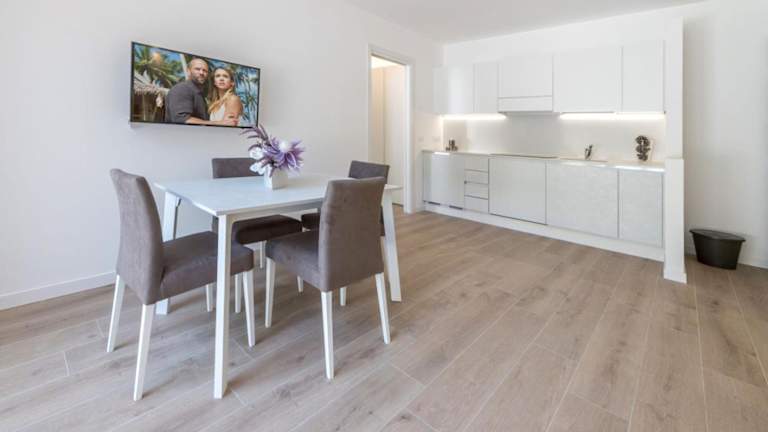 Jede Wohneinheit ist mit einem eigenen Badezimmer ausgestattet, das ein Bidet enthält. Zur Ausstattung gehören Klimaanlage, Flachbild-TV, Kühlschrank sowie eine Küche mit Geschirrspüler, Mikrowelle, Herdplatte und Kaffeemaschine.