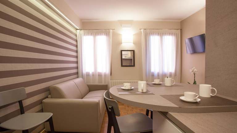 Die Zimmer sind mit einer Klimaanlage ausgestattet und verfügen über eine voll ausgestattete Küche mit einem Essbereich. Zu den Annehmlichkeiten gehören ein Flachbild-TV, ein eigenes Badezimmer mit einem Bidet, kostenlosen Pflegeprodukten und einem Haartrockner. Die Küche bietet einen Kühlschrank, eine Mikrowelle, eine Herdplatte sowie einen Wasserkocher.