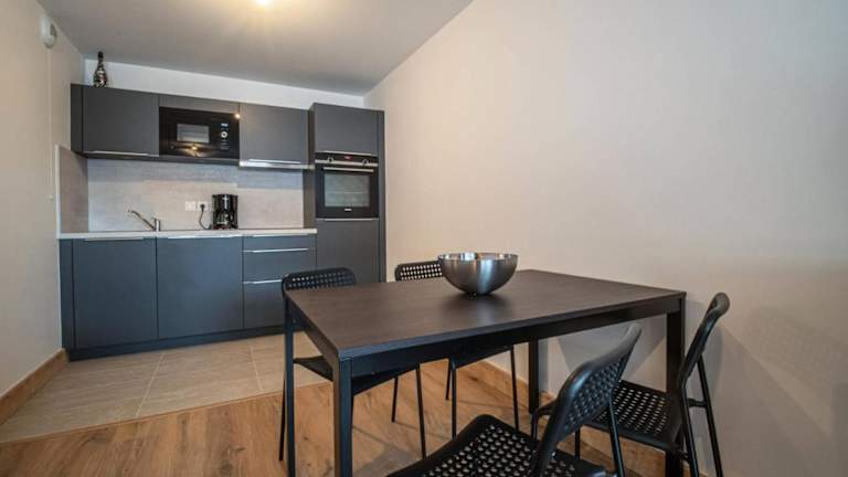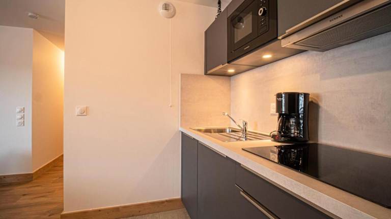 Die Unterkunft verfügt über eine Küche, die mit einem Kühlschrank, Geschirrspüler, Ofen und Kaffeemaschine ausgestattet ist, um die Selbstverpflegung der Gäste zu ermöglichen.