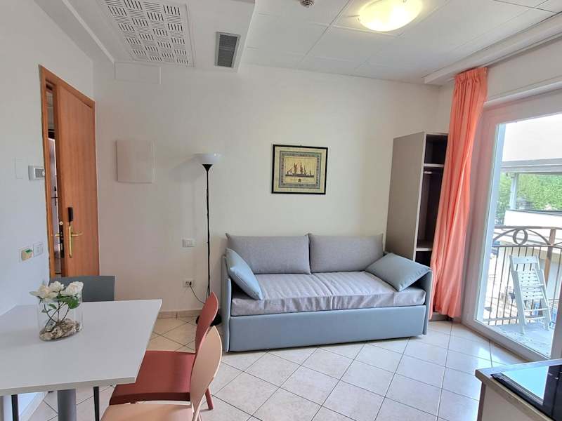 Die klimatisierten Studios und Apartments in der Residence Mare bieten Ihnen eine komfortable Unterkunft für Ihren Aufenthalt. Die meisten Zimmer verfügen über einen Balkon und sind mit einem Doppelbett und einem Sofabett ausgestattet. In der Kochnische finden Sie einen Herd und eine Mikrowelle. Zur Ausstattung gehören auch ein Telefon, ein Fernseher und WLAN. Rollstuhlgerechte Zimmer mit barrierefreiem Bad sind ebenfalls verfügbar.