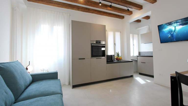 Die Unterkunft befindet sich im Viertel Santa Croce von Venedig, in der Nähe von Sehenswürdigkeiten wie dem Markusplatz, der 1,7 km entfernt ist, sowie der Basilica dei Frari, die 600 m entfernt liegt. Weitere interessante Orte in der Umgebung sind der Bahnhof Venedig Santa Lucia, die Rialtobrücke und der Markusdom. Der nächste Flughafen ist der Flughafen Venedig Marco Polo, der sich 13 km von der Unterkunft entfernt befindet.