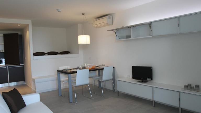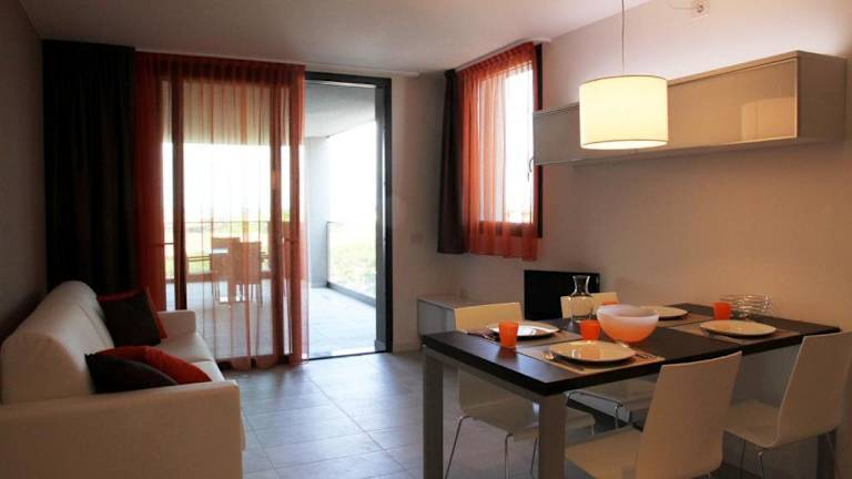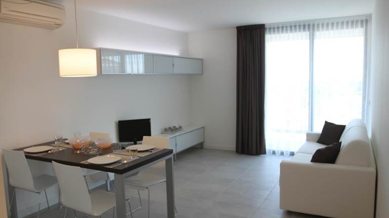 Die Apartments in der Residence Ormeggio sind geräumig und bieten Ihnen allen Komfort, den Sie für einen angenehmen Aufenthalt benötigen. Jedes Apartment verfügt über einen eigenen Balkon, auf dem Sie die frische Luft und die Aussicht genießen können. Die Apartments sind elegant eingerichtet und verfügen über einen gemütlichen Sitzbereich mit einem Schlafsofa. Die voll ausgestattete Küchenzeile ermöglicht es Ihnen, Ihre Mahlzeiten nach Ihren Wünschen zuzubereiten. Ein Essbereich ist ebenfalls vorhanden, so dass Sie Ihre Mahlzeiten bequem genießen können. Ein Flachbild-Sat-TV und eine Waschmaschine sind ebenfalls in jedem Apartment vorhanden.