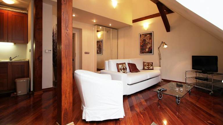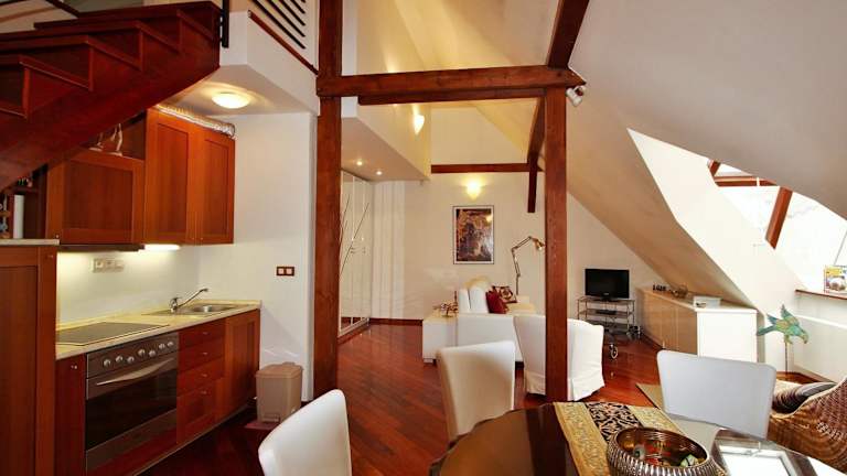 Das Residence Dusni befindet sich im Stadtzentrum von Prag und ist nur 200 m vom Altstädter Ring entfernt. Die zentrale Lage ermöglicht es Ihnen, die wichtigsten Sehenswürdigkeiten der Stadt bequem zu Fuß zu erkunden. Der Alte Rathaus mit der astronomischen Uhr ist nur 300 m entfernt. In unmittelbarer Nähe finden Sie auch verschiedene Restaurants und Geschäfte. Die Karlsbrücke ist nur 800 m entfernt und der Wenzelsplatz kann in 10 Gehminuten erreicht werden. Der Flughafen Prag Letiště Václava Havla Praha ist etwa 11 km entfernt.