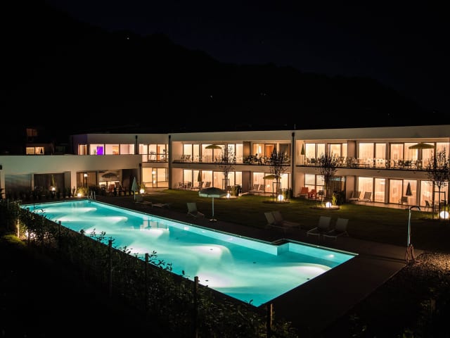 Unsere Residence und unsere Sportlodges liegen in sonniger und ruhiger Lage mit Blick auf die Südtiroler Berge. Das Highlight der Residence & Sportlodges Claudia ist der- von April bis November- beheizte Sportpool mit einer Länge von 25 Meter. Der Sportpool ist ideal zum Trainieren und Entspannen. Rund um den Pool erstreckt sich eine große Liegewiese. Entspannen können unsere Gäste in unserer Wellnesswelt auf der Dachterrasse mit Blick auf die Texelgruppe. Es erwartet Sie ein Sky-Whirlpool auf unserer Dachterrasse, sowie eine finnische Sauna und eine Dampfsauna.