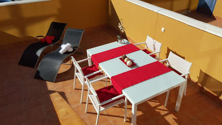 Das Apartment im Residencial Cotillo Playa bietet zwei möblierte Terrassen, von denen eine einen schönen Blick auf den Pool bietet. Das Wohn-/Esszimmer ist gemütlich eingerichtet und verfügt über einen Flachbild-Sat-TV. Die Küche ist gut ausgestattet mit einem Backofen, einer Mikrowelle und einer Kaffeemaschine. Es gibt zwei Schlafzimmer und ein Badezimmer mit Dusche. Kostenloses WLAN ist im Apartment verfügbar.