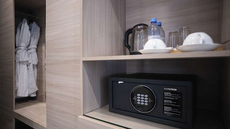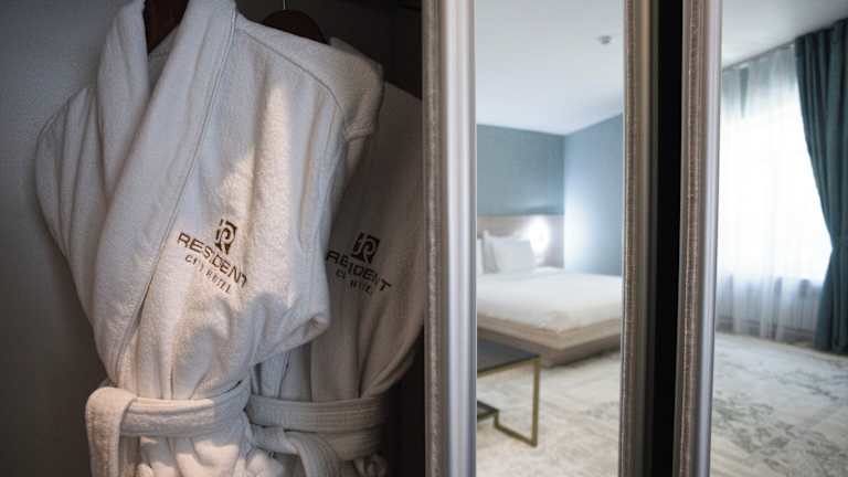Die Zimmer im Resident Hotel Deluxe sind klimatisiert und bieten eine moderne und gemütliche Atmosphäre. Jedes Zimmer verfügt über Annehmlichkeiten wie einen Kühlschrank, einen Wasserkocher und einen Flachbild-Sat-TV. Die Badezimmer sind gut ausgestattet mit einem Haartrockner, Bademänteln und Hausschuhen. Hier können Sie sich nach einem ereignisreichen Tag entspannen und erfrischen.