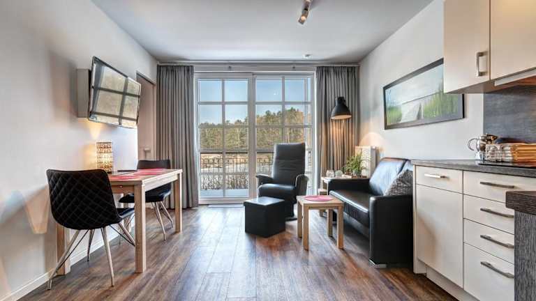Die FeWo 56 in der Residenz am Balmer See bietet eine komfortable Unterkunft mit einer gut ausgestatteten Küchenzeile, die einen Geschirrspüler, eine Mikrowelle und einen Kühlschrank enthält. Das private Badezimmer bietet allen Komfort, den Sie für Ihren Aufenthalt benötigen. Ein Flachbild-TV ist ebenfalls vorhanden, so dass Sie sich nach einem langen Tag entspannen können.