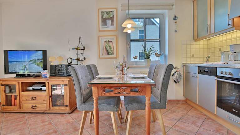 Das Apartment 20 in der Residenz am Fischerstieg bietet ein komfortables Schlafzimmer und ein gemütliches Wohnzimmer. Die gut ausgestattete Küche verfügt über einen Kühlschrank und einen Backofen, so dass Sie Ihre eigenen Mahlzeiten zubereiten können. Genießen Sie den Blick vom Balkon und entspannen Sie sich nach einem langen Tag am Strand. Zur Unterhaltung stehen Ihnen ein TV, ein DVD-Player und ein CD-Player zur Verfügung. Kostenfreies WLAN ist ebenfalls vorhanden.