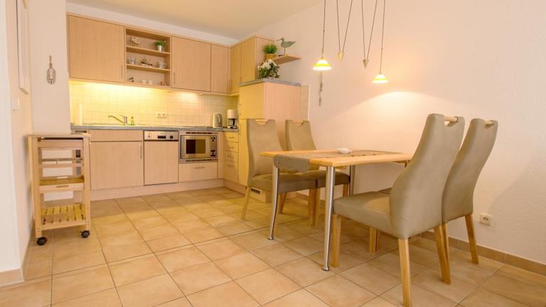 Die Ferienwohnung ist mit 1 Schlafzimmer ausgestattet und verfügt über einen TV. Die Küche ist voll ausgestattet und beinhaltet einen Kühlschrank, Geschirrspüler, Waschmaschine, Ofen und Mikrowelle.