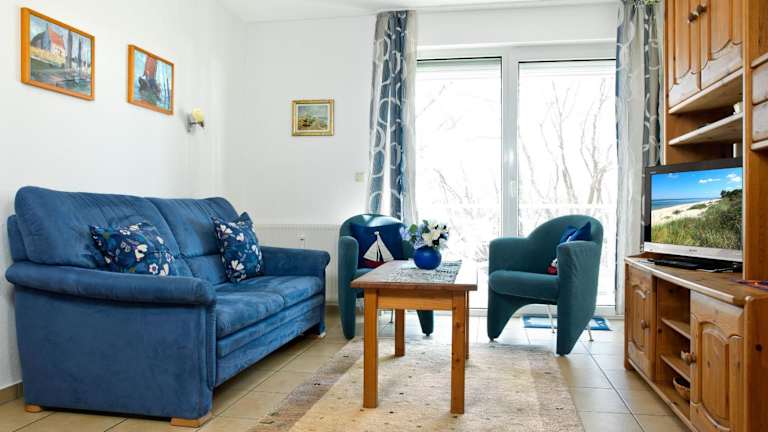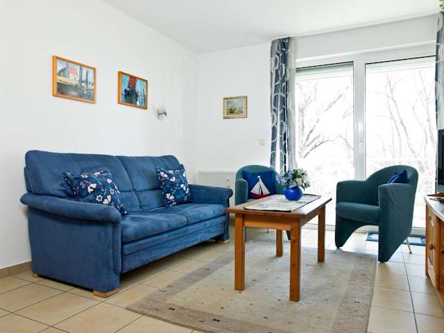 Die Ferienwohnung umfasst einen Balkon, ein Schlafzimmer, ein Wohnzimmer sowie eine gut ausgestattete Küche, die über einen Kühlschrank und Geschirrspüler verfügt. Zur Unterhaltung steht ein TV mit Satellitenkanälen und ein CD-Player zur Verfügung.