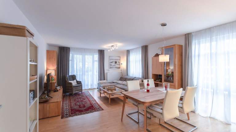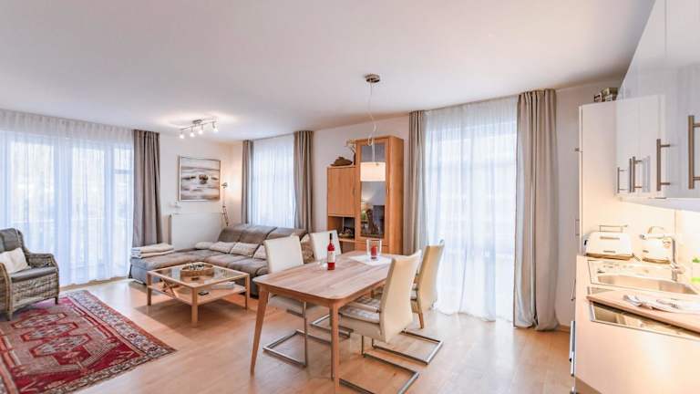Die Residenz an der Prorer Wiek, App 06 bietet komfortable Übernachtungsmöglichkeiten in Form einer Ferienwohnung mit Balkon und kostenlosem WLAN. Die Unterkunft ist für den Aufenthalt von Familien und größeren Gruppen geeignet und erlaubt Haustiere. Es sind keine Feierlichkeiten wie Junggesellenabschiede gestattet. Der Check-in ist von 16:00 bis 17:00 Uhr möglich, während das Check-out von 08:00 bis 10:00 Uhr erfolgt.