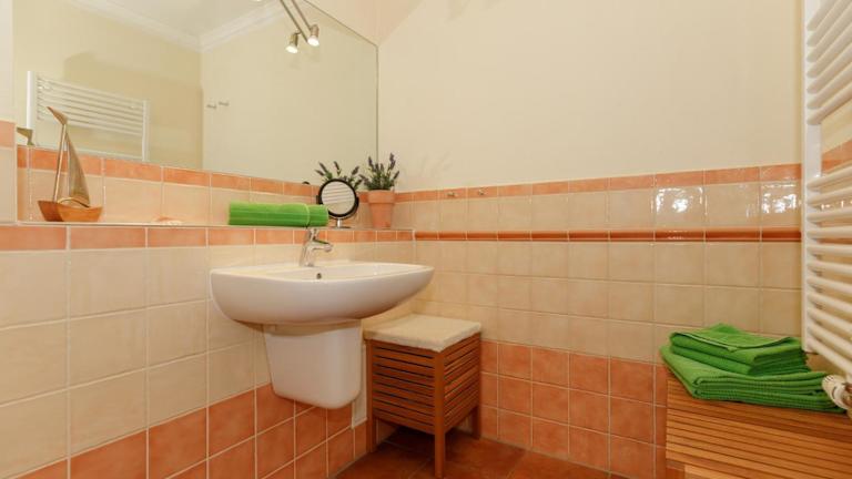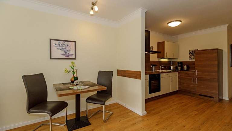 Die Ferienwohnung besteht aus einem Schlafzimmer, einem Wohnzimmer und einer voll ausgestatteten Küche, die mit einem Kühlschrank und einer Kaffeemaschine ausgestattet ist. Das Badezimmer verfügt über eine Dusche und einen Haartrockner. Zur weiteren Ausstattung gehören ein TV, ein DVD-Player sowie ein CD-Player. Allergikerfreundliche Zimmer sind verfügbar.