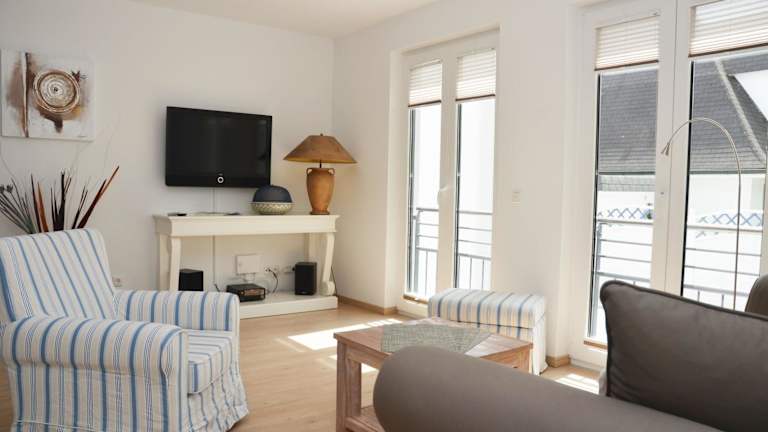 Das Apartment in der Residenz Margarete - Apt. 2.5 verfügt über 2 Schlafzimmer und ein geräumiges Wohnzimmer mit einem TV. Die voll ausgestattete Küchenzeile bietet Ihnen die Möglichkeit, Ihre eigenen Mahlzeiten zuzubereiten, und ist mit einem Kühlschrank und einem Geschirrspüler ausgestattet. Zudem stehen Ihnen 2 Badezimmer mit Dusche zur Verfügung. Genießen Sie die Privatsphäre auf dem Balkon und nutzen Sie das kostenfreie WLAN, um mit Ihren Lieben in Kontakt zu bleiben.