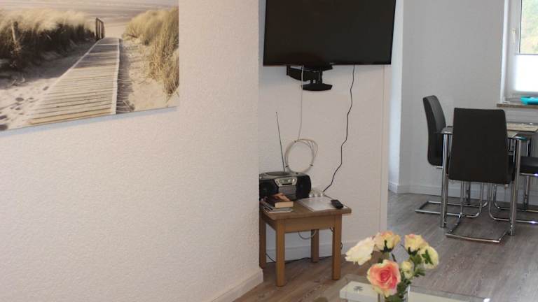 Das Apartment in der Residenz Ostseestrand Nr_ 11 verfügt über ein gemütliches Schlafzimmer, ein Wohnzimmer mit Flachbild-Kabel-TV und eine voll ausgestattete Küche mit Kühlschrank. Handtücher und Bettwäsche werden zur Verfügung gestellt, sodass sich die Gäste wie zu Hause fühlen können. Ein Balkon bietet einen schönen Blick auf die Umgebung.