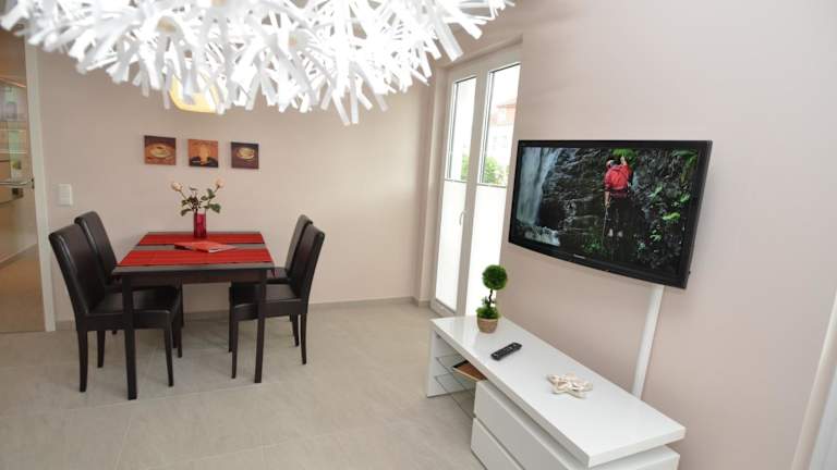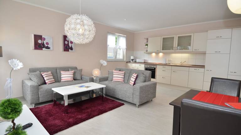 Das Apartment bietet mit seinen 2 Schlafzimmern und dem gemütlichen Wohnzimmer ausreichend Platz für einen komfortablen Aufenthalt. Die voll ausgestattete Küchenzeile mit Kühlschrank und Backofen bietet Ihnen die Möglichkeit, Ihre eigenen Mahlzeiten zuzubereiten. Das Badezimmer ist mit einer Dusche ausgestattet und bietet Ihnen allen nötigen Komfort. Genießen Sie den Balkon, auf dem Sie entspannen und die frische Luft genießen können.