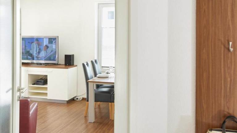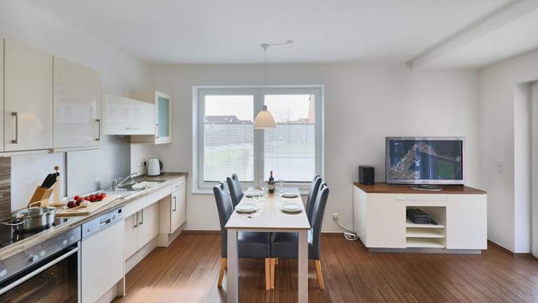 Die Ferienwohnung bietet Platz in 2 Schlafzimmern und ist mit einer Küchenzeile ausgestattet, die einen Kühlschrank und einen Geschirrspüler umfasst. Ein Flachbild-TV sowie ein Sitzbereich sind ebenfalls vorhanden. Das Badezimmer ist mit einer Dusche ausgestattet. Handtücher und Bettwäsche können gegen Aufpreis zur Verfügung gestellt werden.