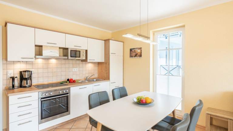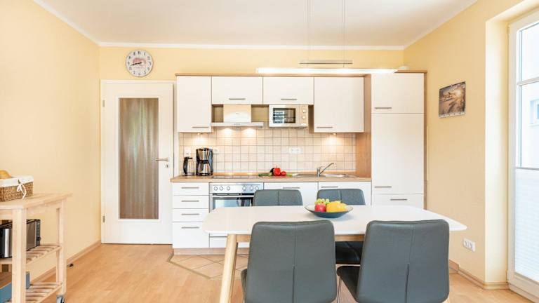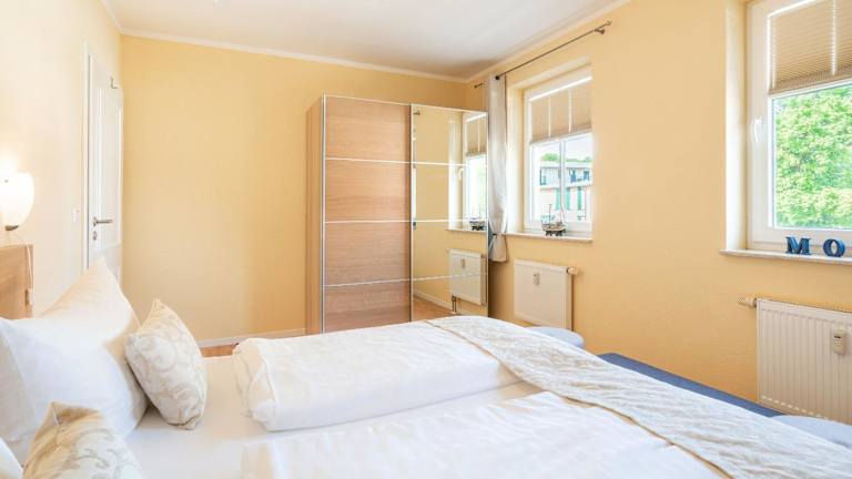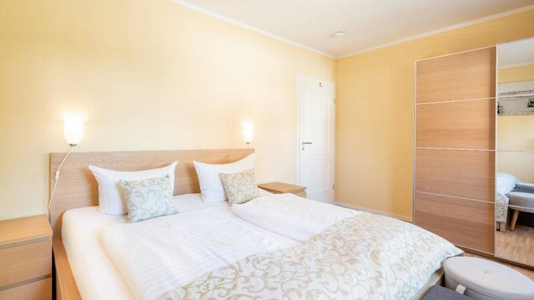 Die Ferienwohnung besteht aus zwei Schlafzimmern, einem Wohnzimmer und einer voll ausgestatteten Küchenzeile, die mit einem Kühlschrank und einer Kaffeemaschine ausgestattet ist. Zudem gibt es ein Badezimmer mit Dusche und Haartrockner. Handtücher und Bettwäsche werden zur Verfügung gestellt.