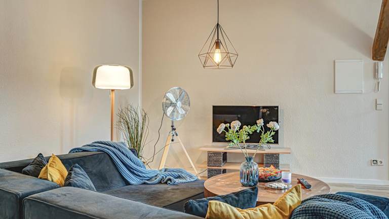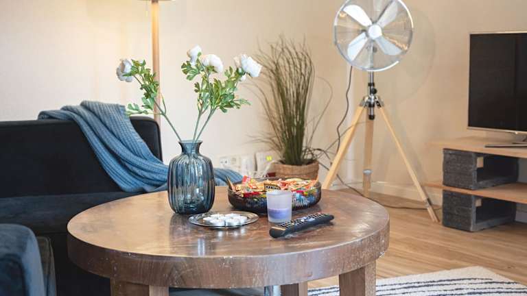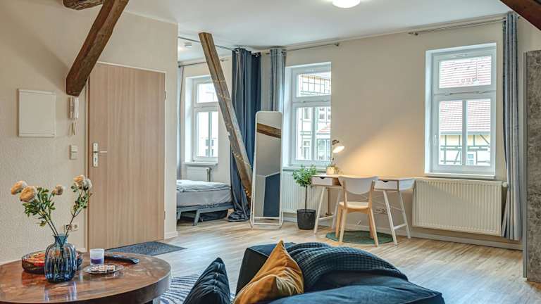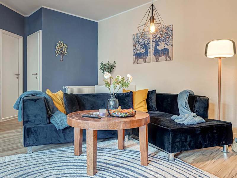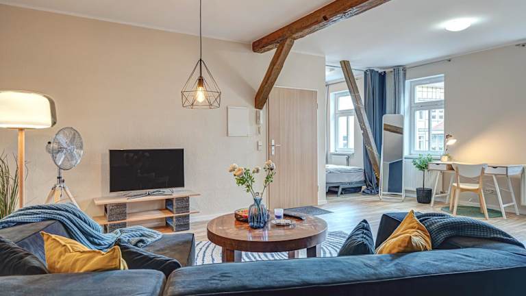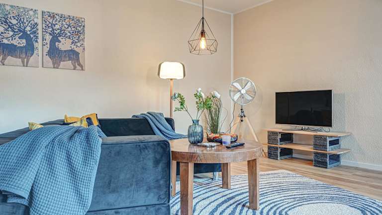 Die Ferienwohnung umfasst ein Schlafzimmer, ein Wohnzimmer und eine voll ausgestattete Küche mit Kühlschrank und Kaffeemaschine. Des Weiteren steht ein Badezimmer mit Badewanne und kostenlosen Pflegeprodukten zur Verfügung. Handtücher und Bettwäsche sind ebenfalls vorhanden.