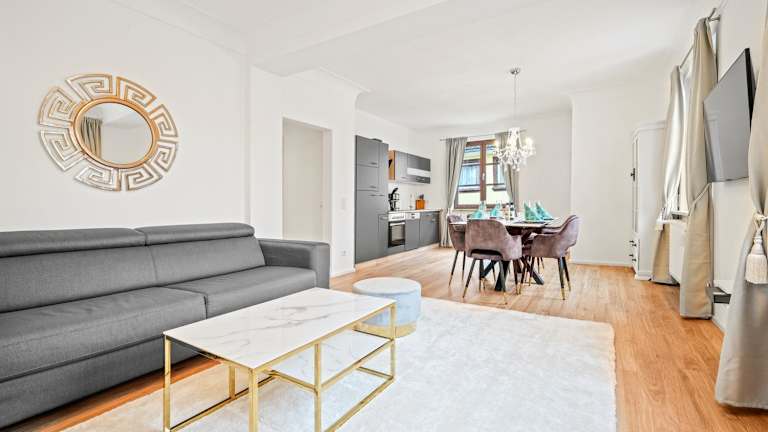 Das Apartment besteht aus 3 Schlafzimmern, einem Wohnzimmer, einer voll ausgestatteten Küche mit Kühlschrank und Kaffeemaschine sowie einem Badezimmer mit Dusche und kostenlosen Pflegeprodukten. Handtücher und Bettwäsche werden bereitgestellt. Es sind Nichtraucherzimmer verfügbar, und Haustiere sind nicht gestattet.