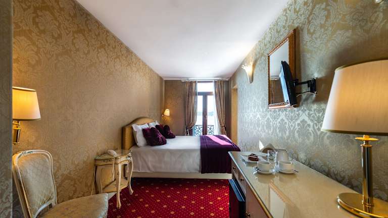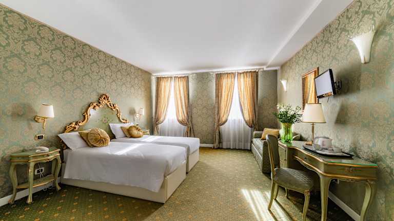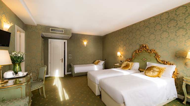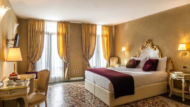 Die klimatisierten Zimmer der A Tribute to Music Residenza sind im traditionellen venezianischen Stil eingerichtet und bieten Ihnen einen gemütlichen Rückzugsort nach einem ereignisreichen Tag. Jedes Zimmer verfügt über einen TV und eine Minibar. Viele Zimmer bieten zudem einen atemberaubenden Blick auf die Lagune und das Markusbecken.