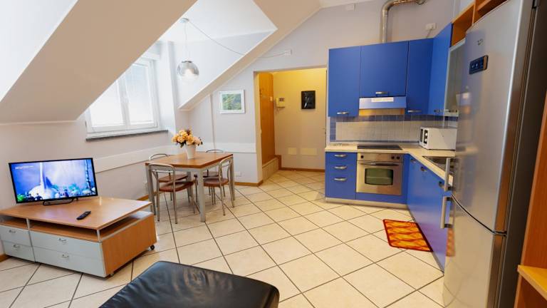 Das Apartment in der Residenza CONCORDIA bietet einen herrlichen Stadtblick und verfügt über einen Balkon, auf dem Sie entspannen und die Aussicht genießen können. Im Inneren finden Sie einen komfortablen Sitzbereich und einen Flachbild-TV für Ihre Unterhaltung. Die voll ausgestattete Küchenzeile bietet alle Annehmlichkeiten, die Sie benötigen, um Ihre eigenen Mahlzeiten zuzubereiten, einschließlich eines Kühlschranks, einer Mikrowelle, eines Kochfelds und einer Kaffeemaschine. Das private Badezimmer ist mit einem Bidet und kostenfreien Pflegeprodukten ausgestattet.
