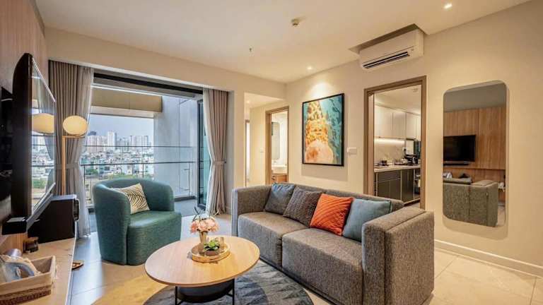Das Vietnam d'Or Aparts - RiverGate Residence, Free Gym&Pool in Ho-Chi-Minh-Stadt bietet Ihnen einen komfortablen Aufenthalt mit Stadtblick und einer Vielzahl von Annehmlichkeiten. Genießen Sie den Außenpool, den Garten und die Terrasse sowie die kostenfreie Nutzung von WLAN und Privatparkplätzen. Jede Wohneinheit ist mit einer voll ausgestatteten Küche, einem Flachbild-Sat-TV und einem eigenen Badezimmer ausgestattet. Das Apartment bietet auch einen Kinderspielplatz und liegt in der Nähe beliebter Sehenswürdigkeiten wie dem Nha Rong Wharf und dem Museum der Schönen Künste.