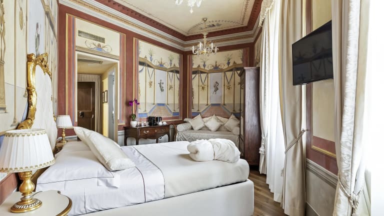 Die Zimmer der Unterkunft verfügen über hohe Decken mit originalen Fresken aus dem 19. Jahrhundert und originale Fußböden. Zur weiteren Ausstattung der Zimmer gehören Klimaanlage, Flachbild-Sat-TV, Minibar sowie ein eigenes Badezimmer mit Hausschuhen und kostenfreien Pflegeprodukten der Marke L'Occitane.