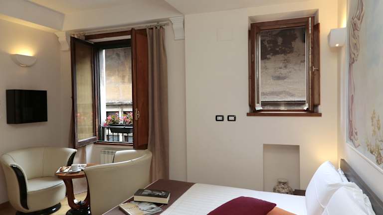Die klimatisierten Zimmer sind klassisch mit Holz- oder Fliesenböden sowie dekorativen Wandbordüren und Wandkunst eingerichtet. Jedes Zimmer verfügt über ein Doppelbett oder ein Sofabett, eine Minibar, einen Schreibtisch, ein Bügelset, ein Telefon, einen Flachbildschirmfernseher mit Satellitenempfang und kostenfreies WLAN. Die Badezimmer sind mit einer Dusche, einem Bidet, einem Haartrockner und Kosmetikartikeln ausgestattet. Alle Zimmer sind Nichtraucherzimmer und Hausschuhe werden bereitgestellt.