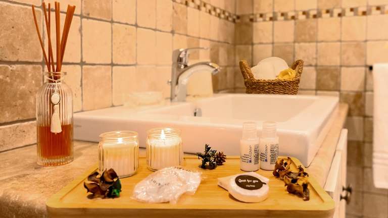 Das Ferienhaus umfasst 1 Schlafzimmer, ein Wohnzimmer sowie eine voll ausgestattete Küchenzeile mit Kühlschrank und Kaffeemaschine. Des Weiteren steht ein Badezimmer mit Bidet und Dusche zur Verfügung. Handtücher und Bettwäsche sind ebenfalls vorhanden.