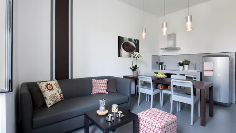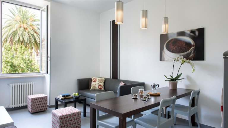 Die klimatisierten Wohneinheiten im Residenza Termini sind komfortabel und modern eingerichtet. Jede Wohneinheit verfügt über eine komplett ausgestattete Küchenzeile, in der Sie Ihre eigenen Mahlzeiten zubereiten können. Ein Flachbild-TV, kostenfreies WLAN und ein eigenes Bad mit kostenlosen Pflegeprodukten und einem Haartrockner gehören ebenfalls zur Ausstattung. Sie werden sich in diesen gemütlichen Wohneinheiten wie zu Hause fühlen.