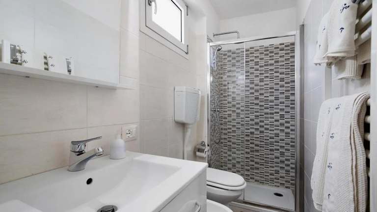 Die Ferienwohnung umfasst 1 Schlafzimmer, ein Wohnzimmer, eine voll ausgestattete Küche mit Kühlschrank und Kaffeemaschine sowie ein Badezimmer mit Bidet und Dusche. Handtücher und Bettwäsche werden bereitgestellt. Die Unterkunft verfügt über Klimaanlage und bietet Nichtraucherzimmer. Es wird darauf hingewiesen, dass die Wohnung im 5. Stock eines Gebäudes ohne Aufzug liegt.