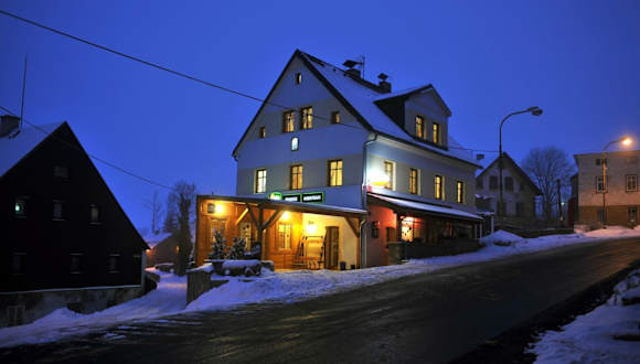 Die Unterkunft befindet sich in Abertamy, 14 km vom Fichtelberg entfernt. Die Umgebung bietet viele Möglichkeiten zum Wandern und Skifahren.