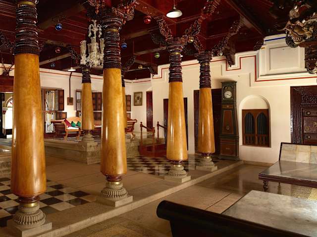 Das Chidambara Vilas - A Luxury Heritage Resort in Chettinad ist ein luxuriöses Boutique-Hotel, das durch seinen traditionellen Charme und seine erstklassigen Annehmlichkeiten besticht. Mit seiner günstigen Lage und der freundlichen und hilfsbereiten 24-Stunden-Rezeption ist das Hotel der ideale Ausgangspunkt, um die Umgebung zu erkunden. Entspannen Sie am Außenpool und genießen Sie die köstlichen Speisen im Live Kitchen Restaurant.