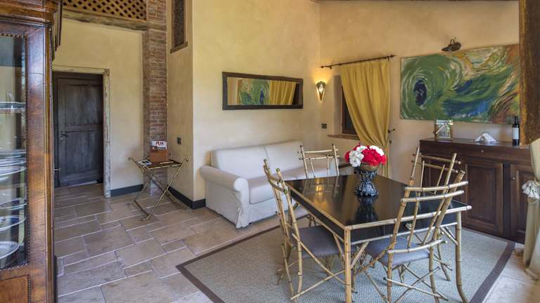 Die Suiten im Resort La Ghiaia sind einzigartig gestaltet und bieten Ihnen einen komfortablen Wohnbereich, Klimaanlage und Sat-TV. Jede Suite ist individuell eingerichtet und verfügt über einen eigenen Eingang. Einige der Suiten befinden sich in der obersten Etage der Hauptvilla und bieten einen atemberaubenden Blick auf die Umgebung.