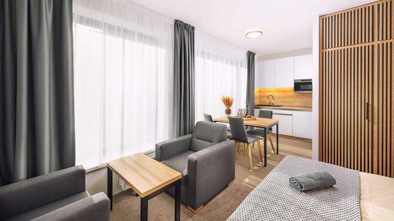 Das Resort Lucky Jasna bietet eine direkte Anbindung an die Skipiste und verfügt über kostenloses WLAN in den öffentlichen Bereichen sowie ein hauseigenes Restaurant mit Blick auf den Chopok. Die Unterkunft legt großen Wert auf Sicherheit und Hygiene, wobei Maßnahmen zur Gewährleistung der Gesundheit der Gäste ergriffen werden.