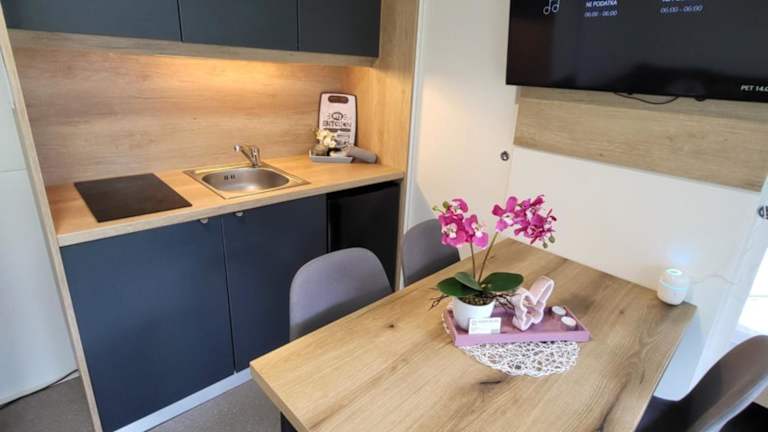 Im Resort na jasi steht Ihnen eine voll ausgestattete Küche zur Verfügung, in der Sie Ihre eigenen Mahlzeiten zubereiten können. Alternativ können Sie in den umliegenden Restaurants und Cafés traditionelle slowenische Gerichte probieren.